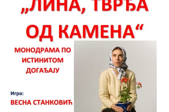 Студентски центар „Приштина“ – Косовска Митровица и Студентски парламент организују представу „ЛИНА, ТВРЂА ОД КАМЕНА“ Монодрама по истинитом догађају у извођењу Весне Станковић Среда, 13. март 2024. године, са почетком у 18:00 часова, сала Митровачког двора. Улаз слободан Монодрама по истоименом роману Јована Д. Петровића Драматизација: Милисав Миленкоивћ Игра: Весна Станковић Режија: Ивана Богићевић…